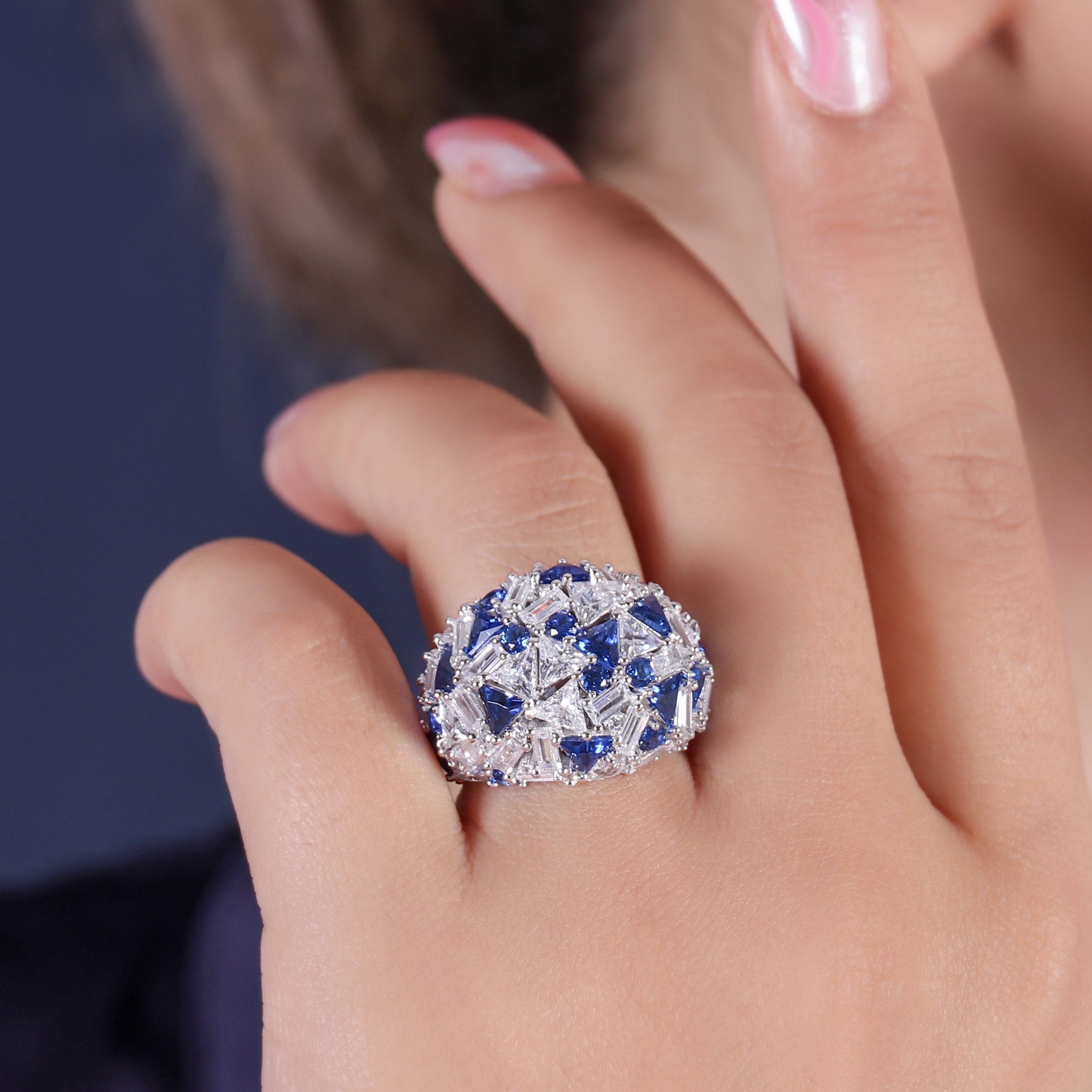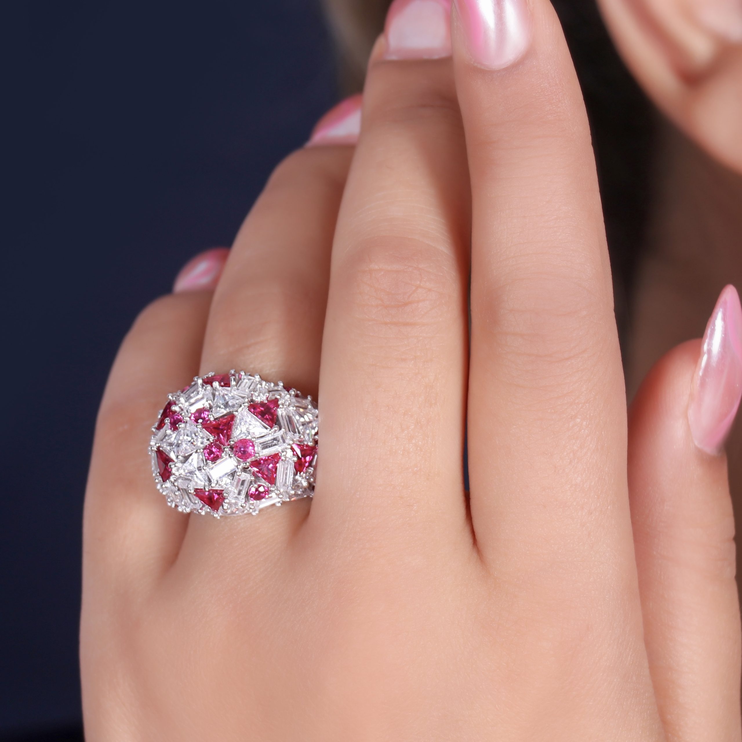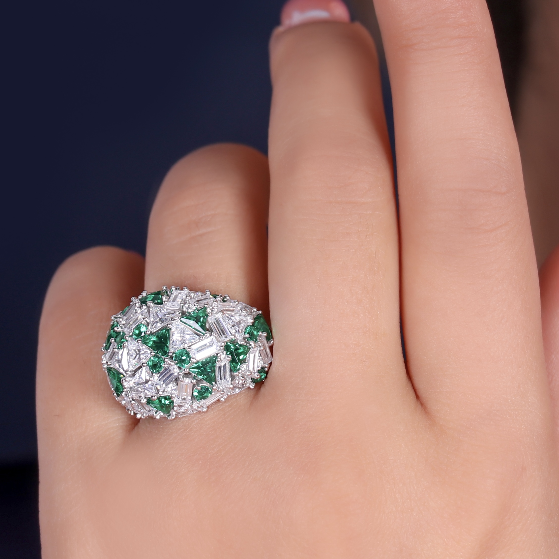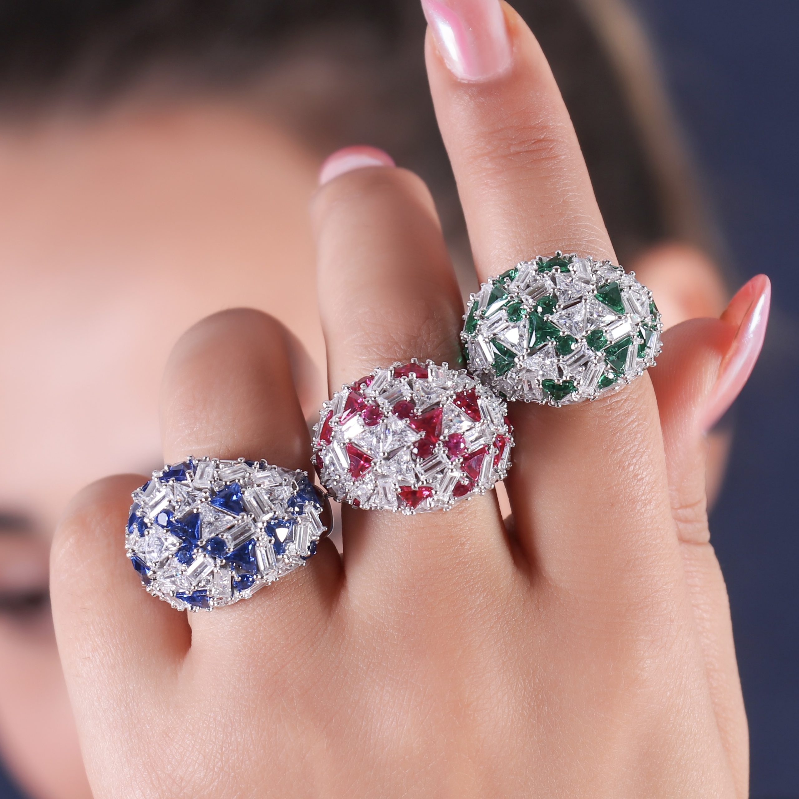 انگشتر دامله نگین باگت رنگی نمادی از دل طبیعت و زیبایی