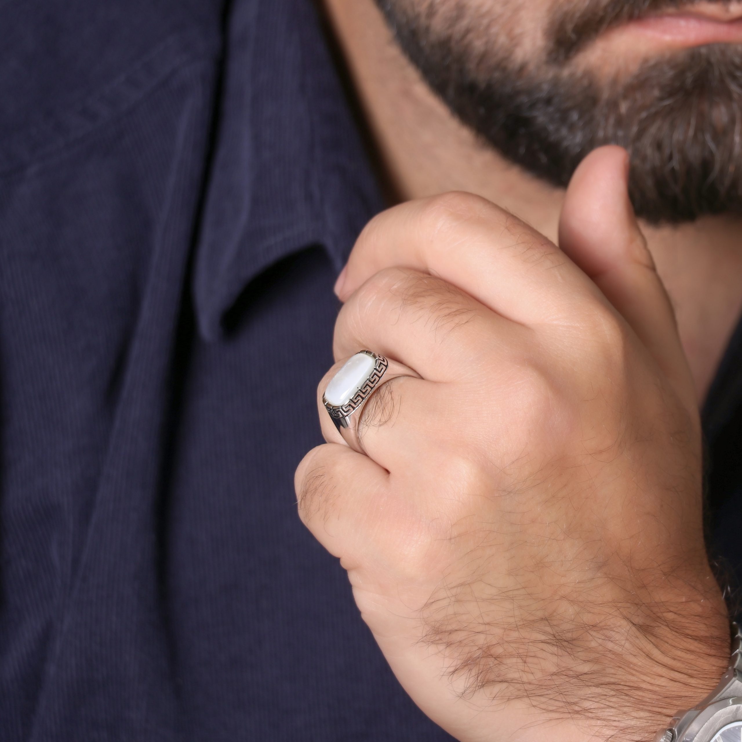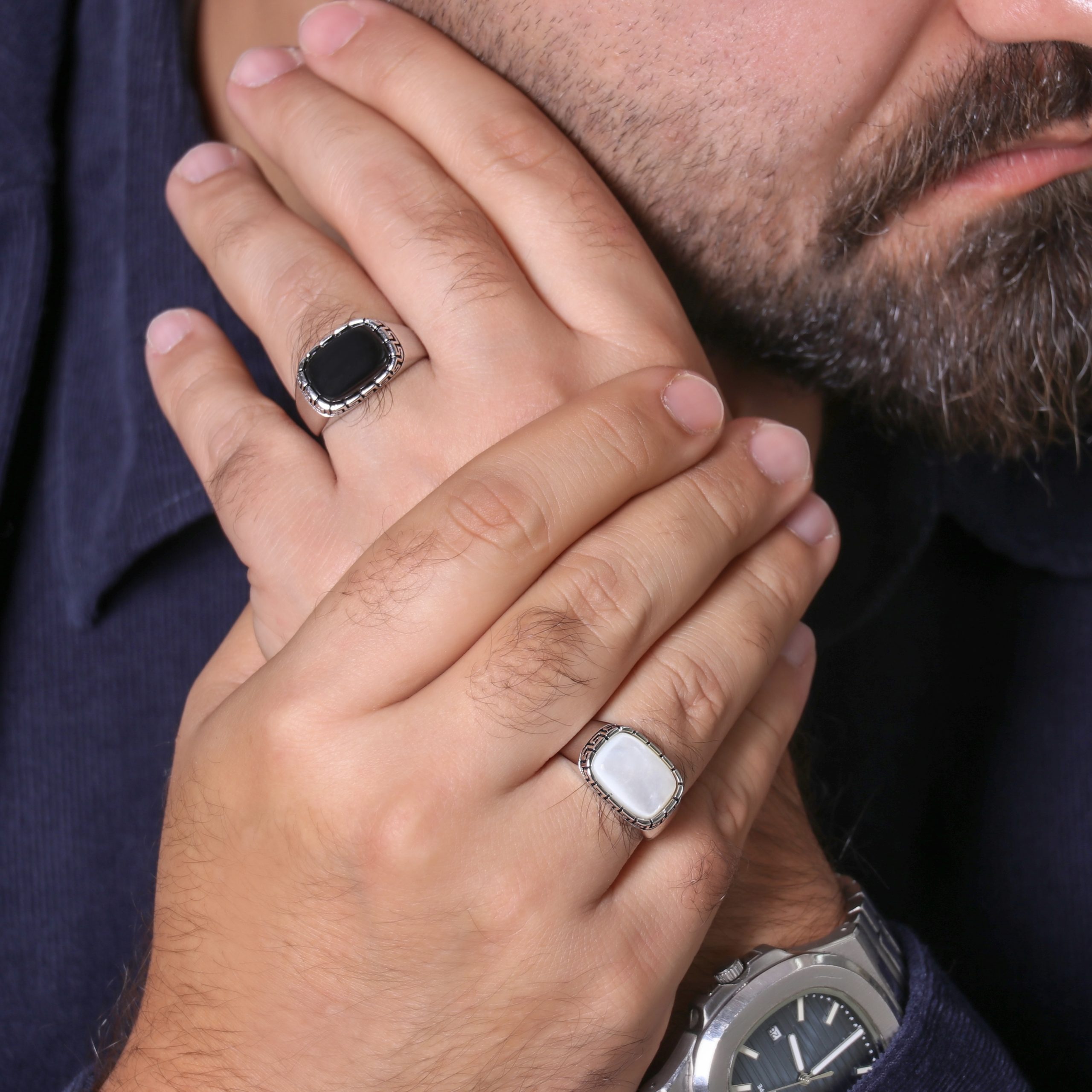 انگشتر مردانه انیکس و صدف طبیعی نمادی از دل طبیعت و زیبایی