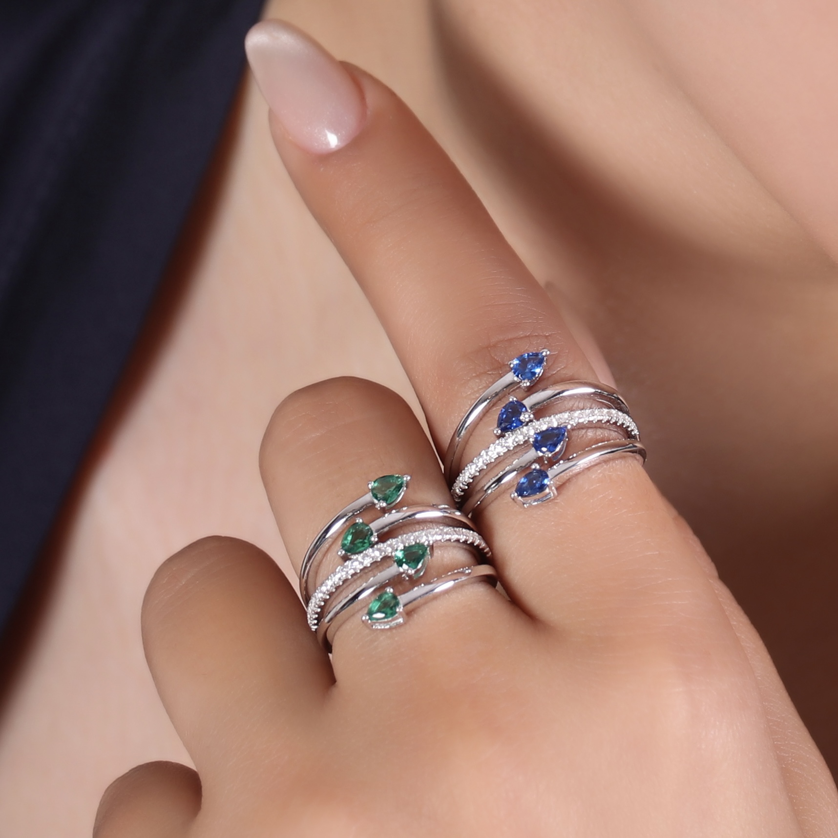 انگشتر نگین اشک رنگی چند لاین نمادی از دل طبیعت و زیبایی