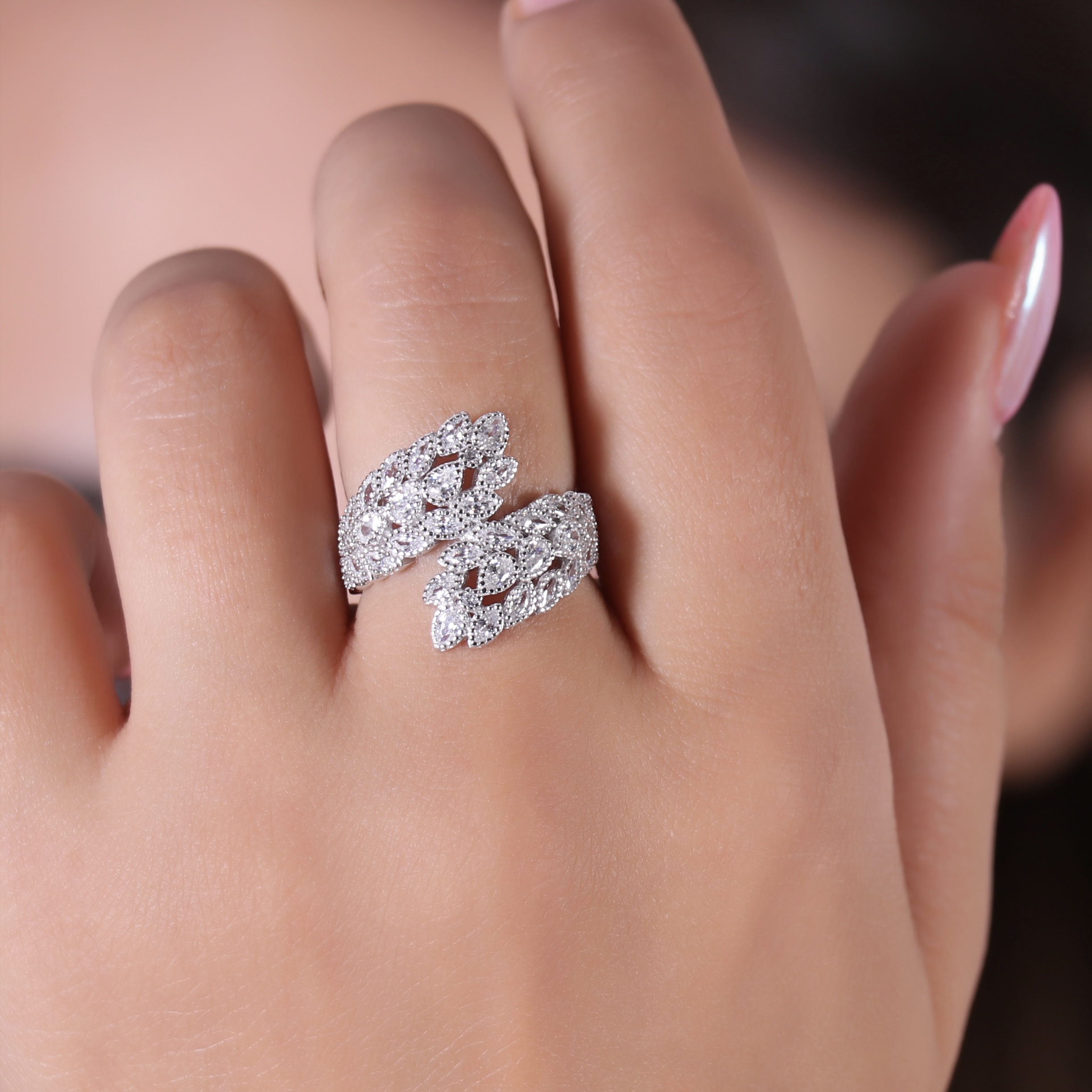 حلقه طرح برگ ضربدری نمادی از دل طبیعت و زیبایی
