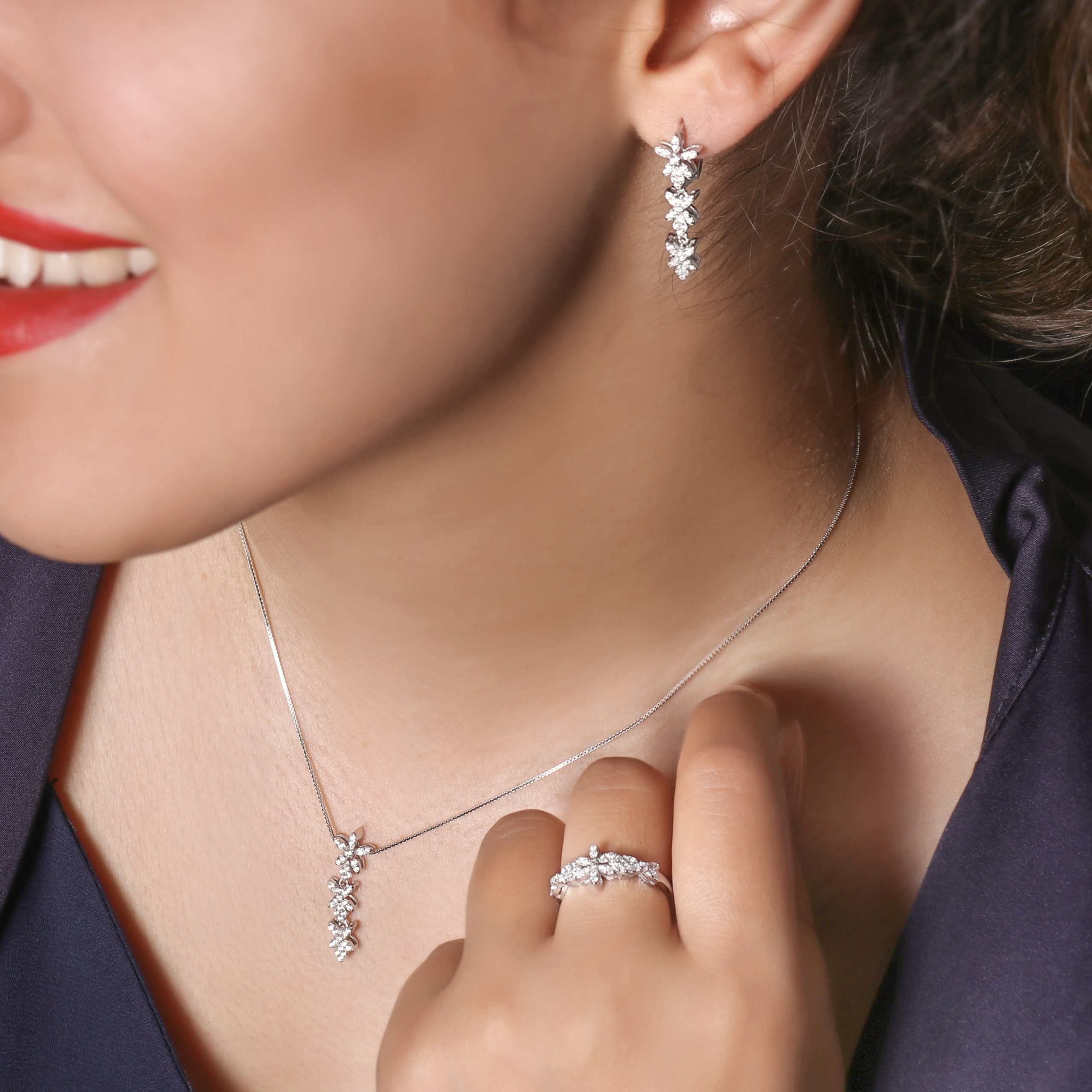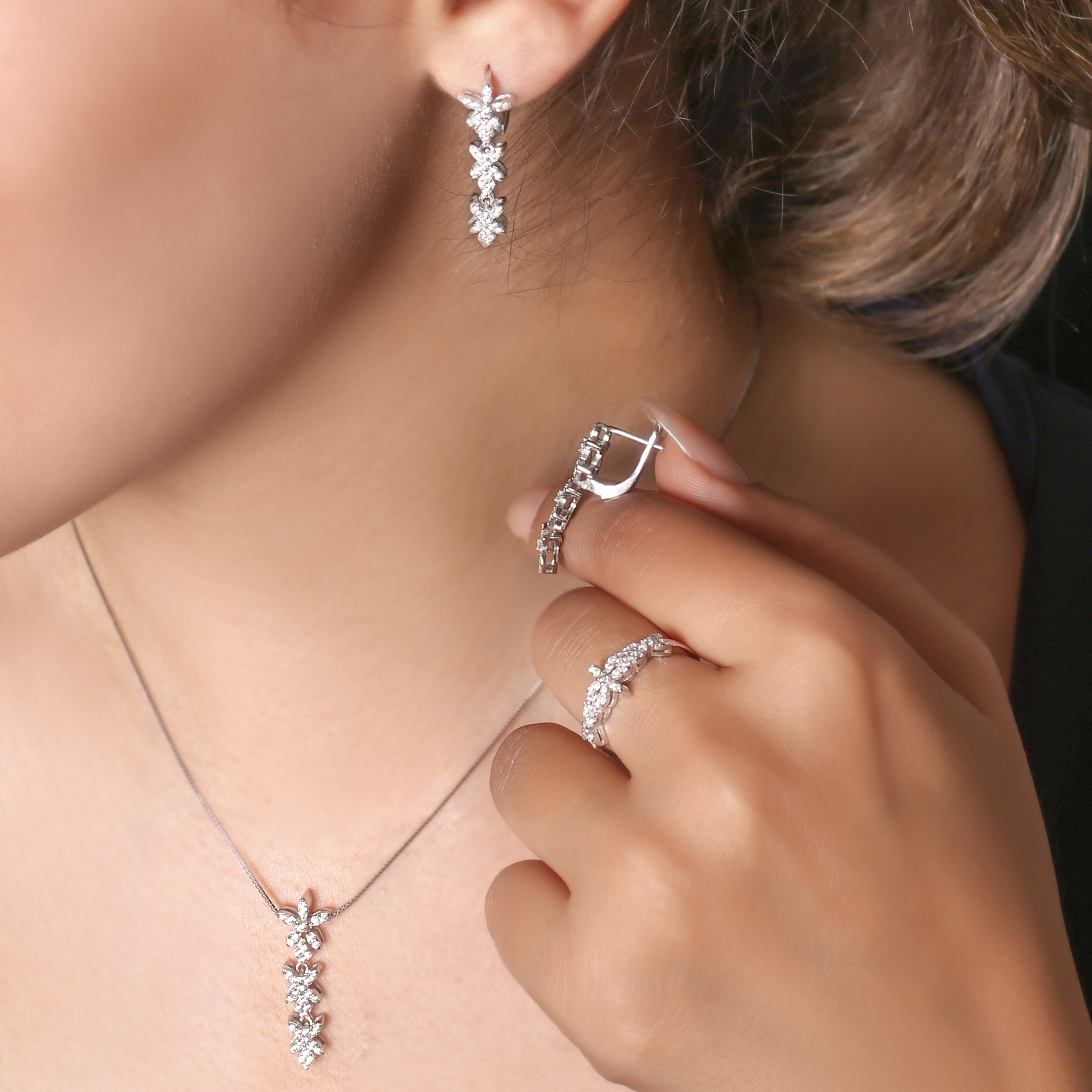 نیمست برگی آویز طرح جواهر با گوشواره حلقه ای ، ترکیبی از ظرافت و اصالت؛ مناسب برای مجالس و هدیهای خاص که زیبایی طبیعی را به شما دیه میدهد.