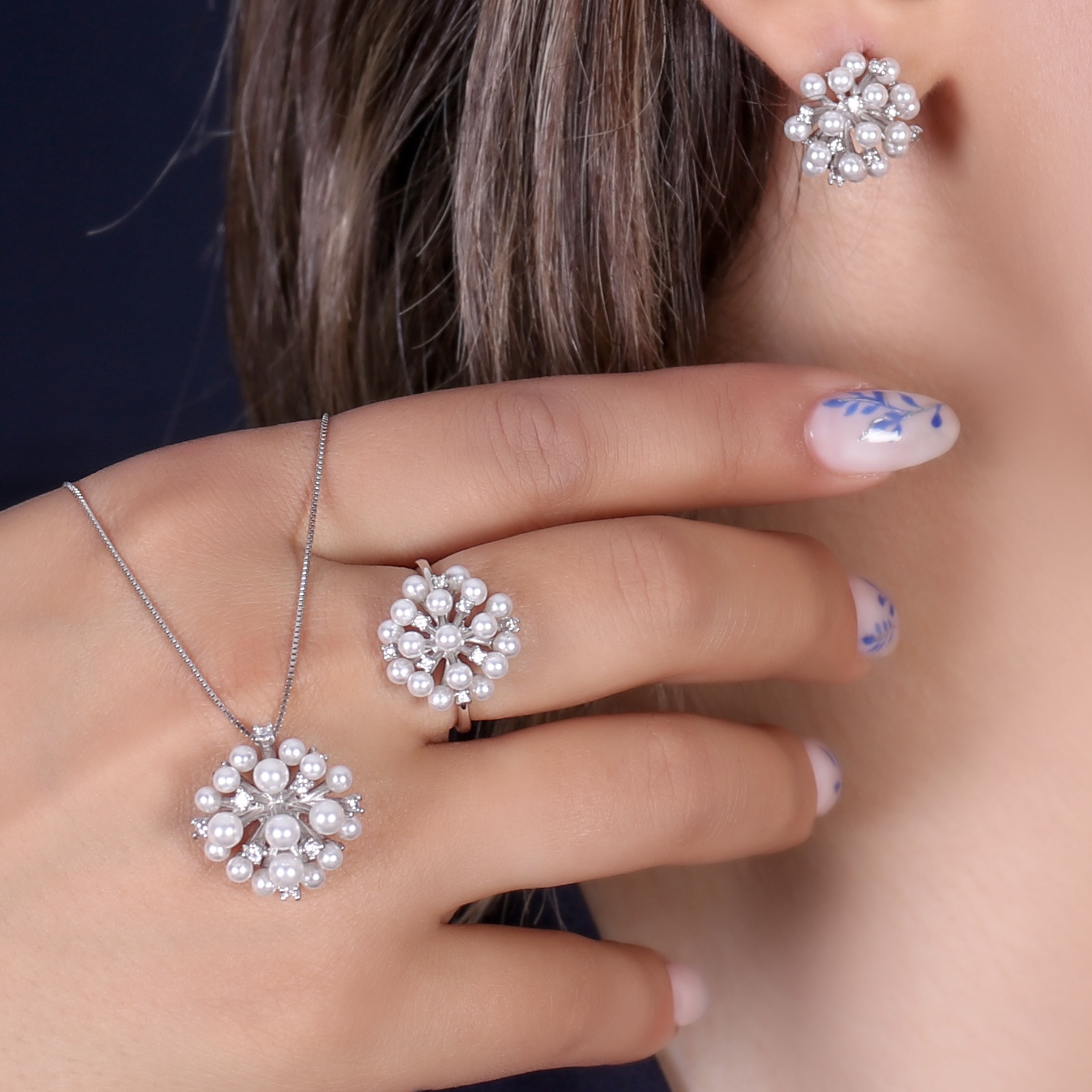 نیمست مروارید قاصدک باگوشواره کلیپسی ، ترکیبی از ظرافت و اصالت؛ مناسب برای مجالس و هدیهای خاص که زیبایی طبیعی را به شما دیه میدهد.