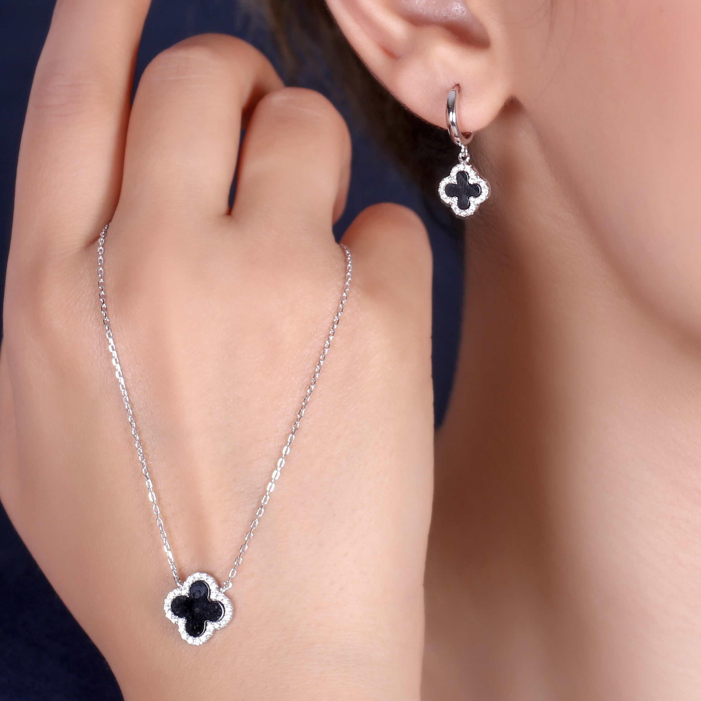 نیمست ونکلیف مشکی باگوشواره حلقه ای ، ترکیبی از ظرافت و اصالت؛ مناسب برای مجالس و هدیه‌ای خاص که زیبایی طبیعی را به شما دیه می‌دهد.